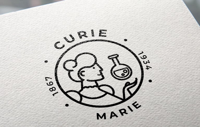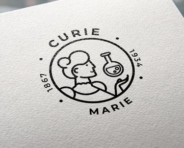 A badge must represent the essence of the brand and show the most relevant characteristics that define it. In this case, powerful women scientists in history.